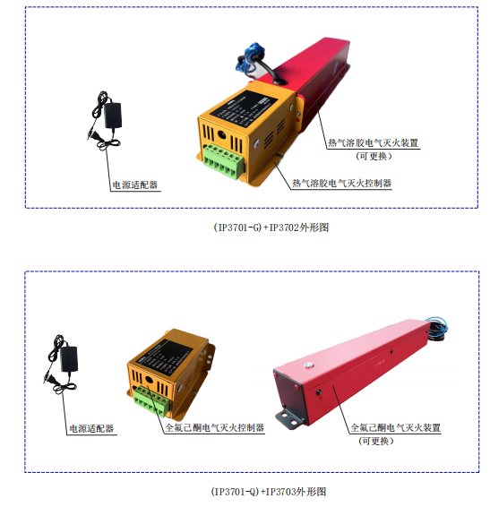 電氣滅火控制器通過內(nèi)部火災(zāi)探測傳感器,監(jiān)測配電系統(tǒng)中的線纜溫度、空間環(huán)境溫度、煙霧等有關(guān)電氣火災(zāi)隱患的信號,實現(xiàn)數(shù)據(jù)在線測量、采集、分析與控制功能,帶有RS485通信接口,用于連接主機,并可選配LoRa-Mesh、4G無線通信接口。電氣滅火控制器共有熱氣溶膠和全氟己酮兩種方式,可根據(jù)不同需求選用。