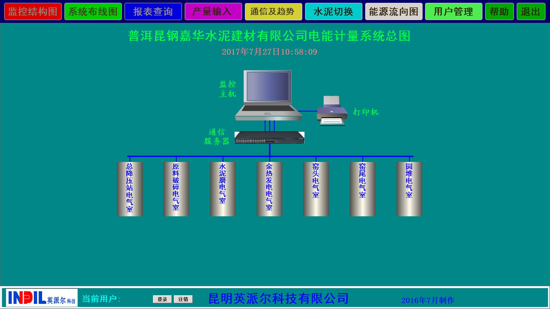 (1)具備完整美觀的系統(tǒng)計量機構(gòu)圖,能直觀顯示各工序所屬主機設(shè)備運行的相關(guān)信息;