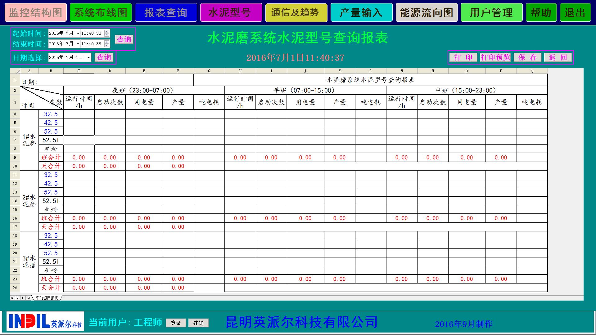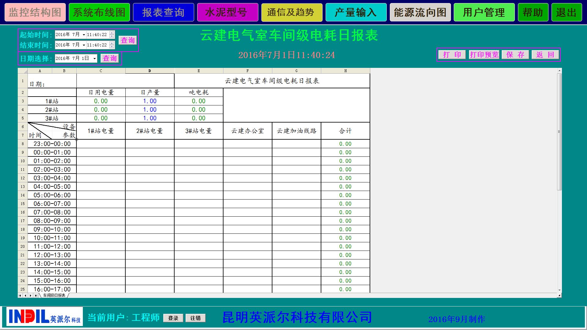 管理系統(tǒng)自動生成的電能信息統(tǒng)計圖形、曲線和報表,以班、日、周、月、年為周期的電能耗統(tǒng)計報表,報表類型分為電壓等級、車間、重要耗能設(shè)備三個層次,報表能以EXCEL類型導(dǎo)出。