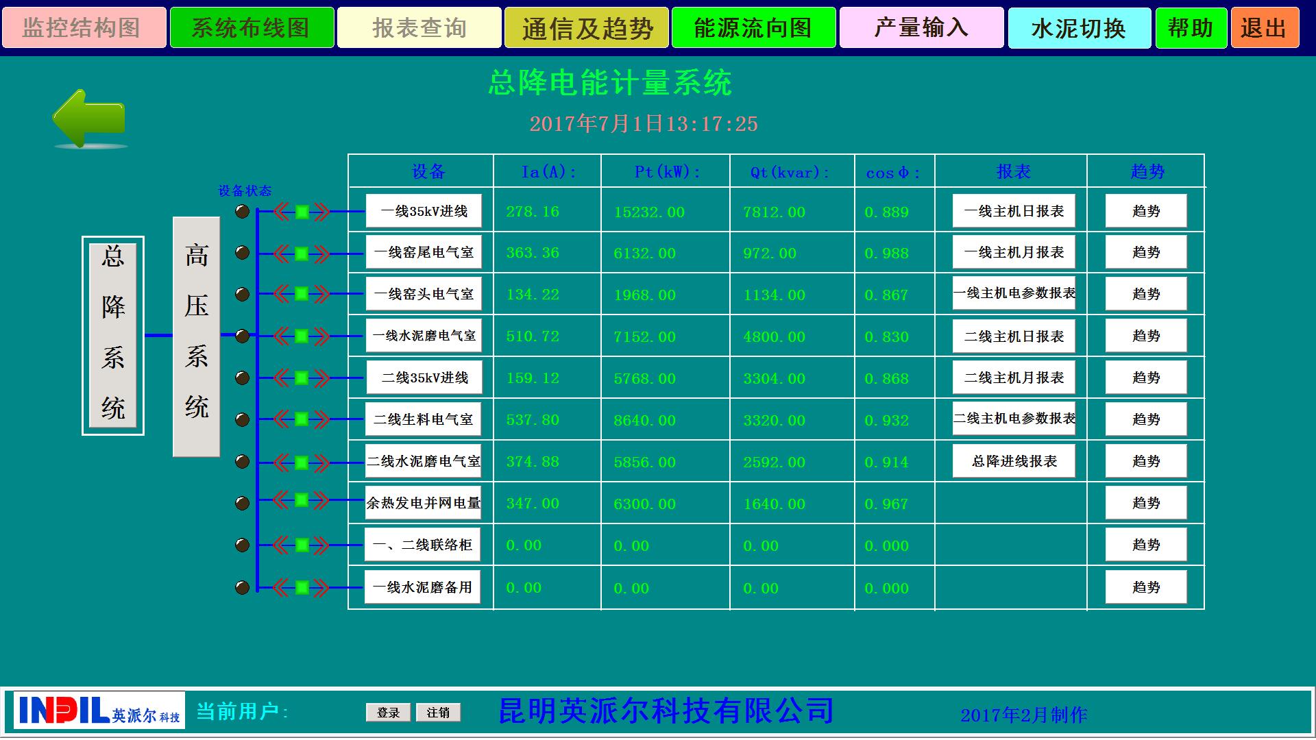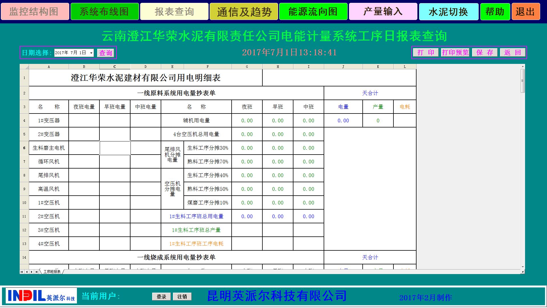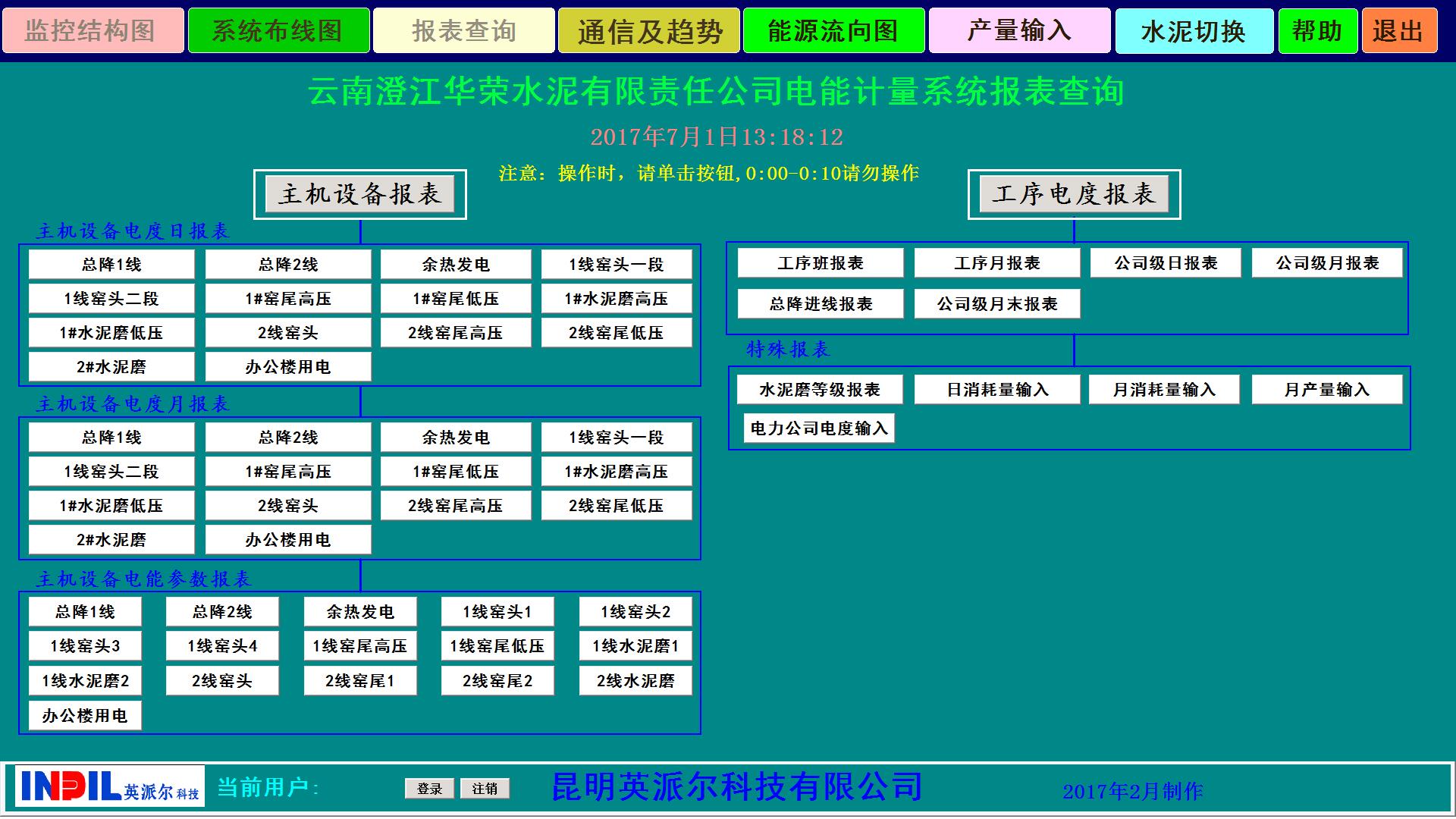 管理系統(tǒng)自動生成的電能信息統(tǒng)計圖形、曲線和報表,以班、日、周、月、年為周期的電能耗統(tǒng)計報表,報表類型分為電壓等級、車間、重要耗能設(shè)備三個層次,報表能以EXCEL類型導(dǎo)出。