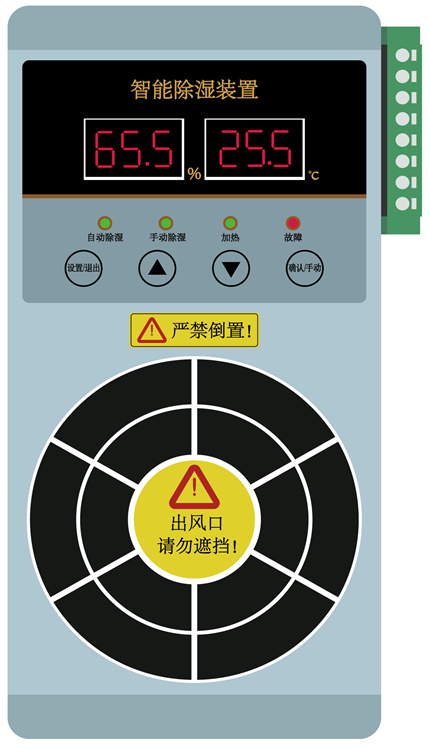 3、除濕風(fēng)道主動引凝、排出氣體加熱降濕,有效達(dá)到了對電氣柜密閉空間防潮除濕的綜合治理;